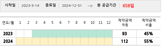 사진설명:공급계약 기간 및 기간별 추정 계약금액